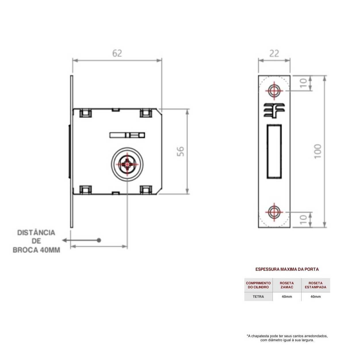 • O cilindro tetra é embutido proporcionando maior segurança;