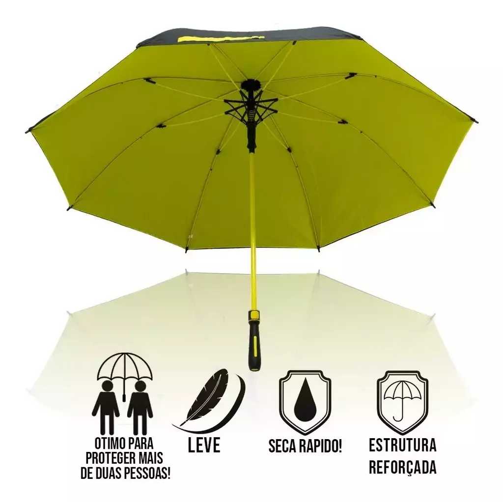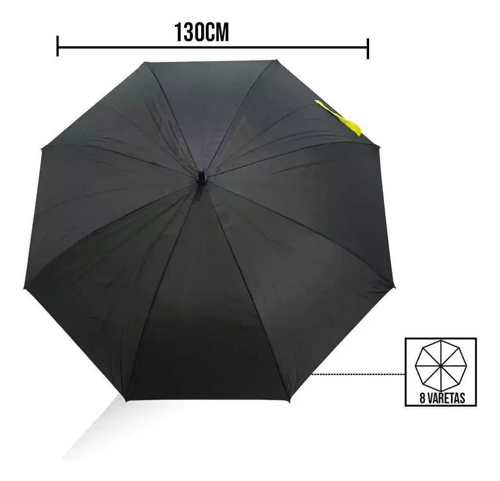 Como podem ver nas fotos, ele é um guarda-chuva grande, quando ABERTO MEDE 130cm, ótimo para proteger mais de duas pessoas. Sua manopla é robusta e resistente, o que dá mais firmeza ao segurar. Esse modelo grande irá te ajudar a abrigar sua família da chuva e do vento. Todo mundo merece esse conforto! E é por isso que muitas empresas o adquirem para usar em seus eventos e recepções.