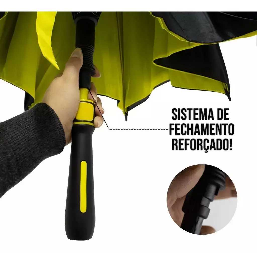 Ele possui um sistema de acionamento automático, com UM CLIQUE no botão ELE ABRE, evitando o trabalho de abrir manualmente em locais de rápida ação e se molhar todo, seu fechamento é manual.